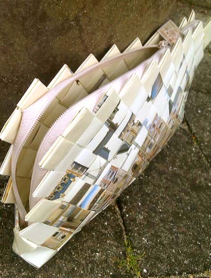 Dagens taske er flettet af en plakat, der var fyldt med parisiske bygningsværker.